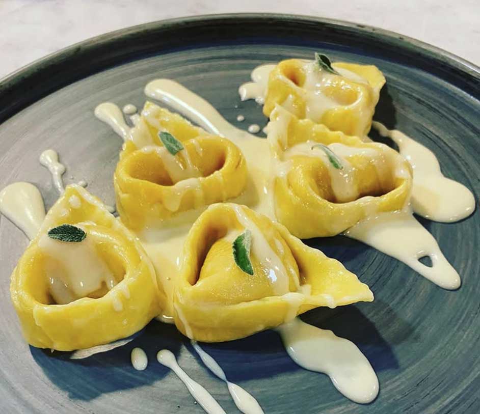 Tortellini con ripieno alla bolognese in due varianti: in brodo e con fonduta di parmigiano e aceto balsamico di Modena